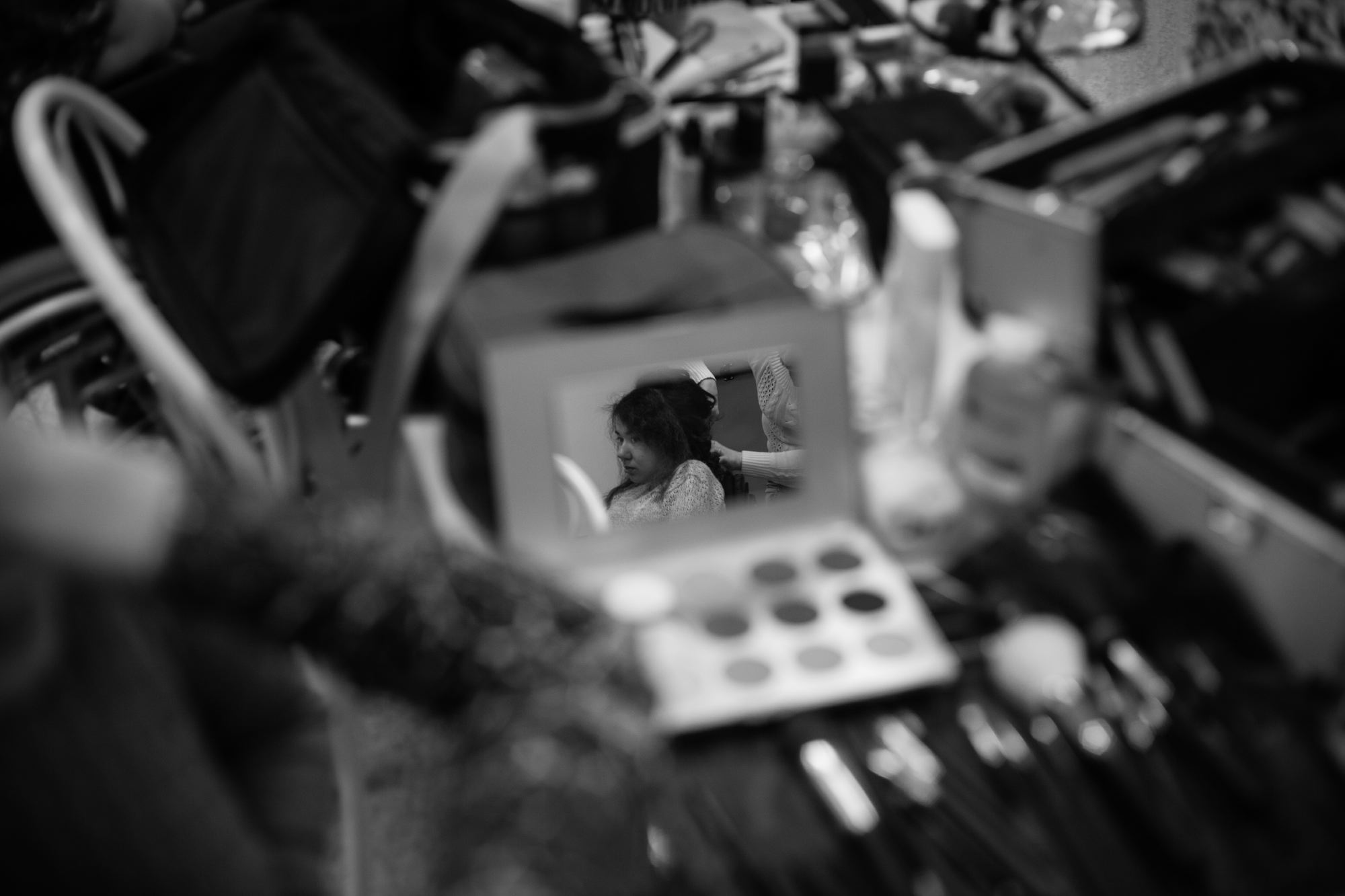 Парикмахеры и визажисты готовят девушек к выходу на сцену