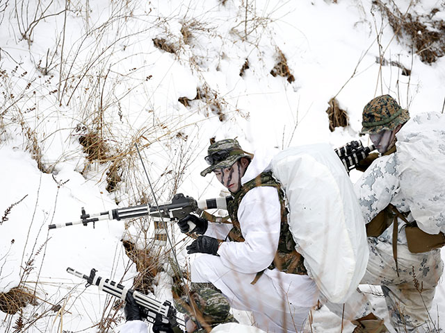 Американские и южнокорейские морпехи тренировались на морозе отражать возможные атаки КНДР