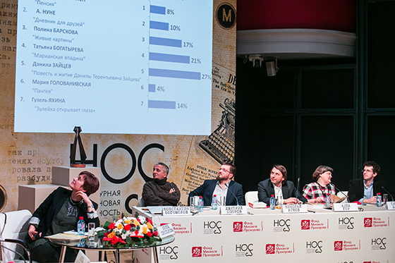 На седьмом году существования «НОСа» судьбу премии впервые решало жюри, в составе которого не оказалось ни одного человека, профессионально связанного с литературой и книгами. «Жюри читателей», — угрюмо предупредил, представляя свою команду, председатель судейской коллегии 2016 года режиссер Константин Богомолов. Жюри безответственных — мог бы сказать он, и это была бы чистая правда: театральный режиссер, искусствовед, двое журналистов и историк ничем в репутационном и карьерном плане не рискуют, вынося на публику свои суждения о литературе.