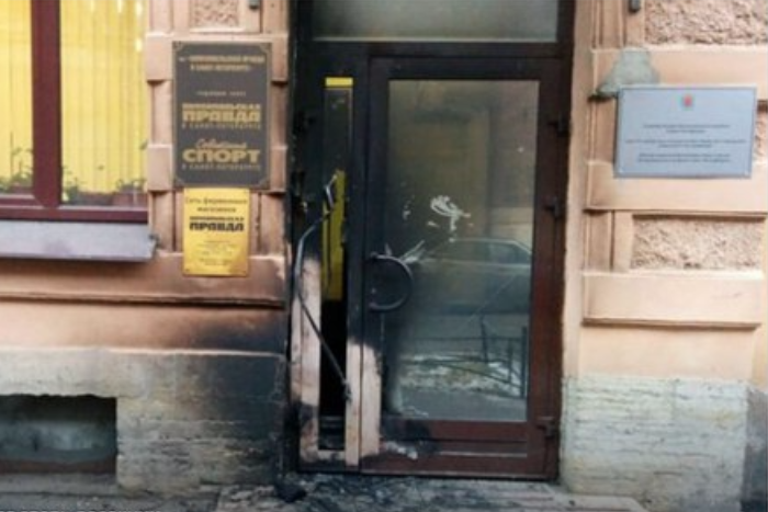 Неизвестные ночью подожгли дверь петербургской редакции «Комсомольской правды» на Гатчинской улице. Как сообщается на сайте издания, возгорание произошло около 1:30. По предварительным данным, на дверь плеснули горючую жидкость и подожгли.