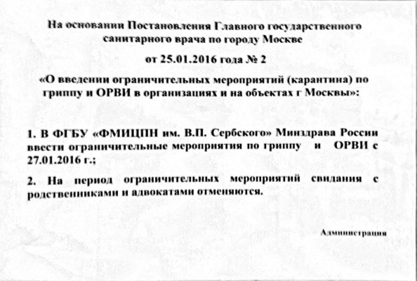 Между тем жена Павленского Оксана Шалыгина пишет в Facebook, что «всех родственников и всех желающих» пускают на территорию центра, то есть запрет пускать родственников и адвокатов распространяется только на Павленского.