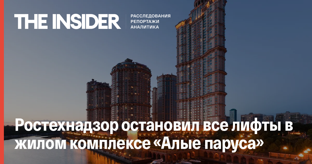 В жилом комплексе «Алые паруса» остановлены все лифты, - сообщает Газета.ру. Данное решение было принято по распоряжению Ростехнадзора.