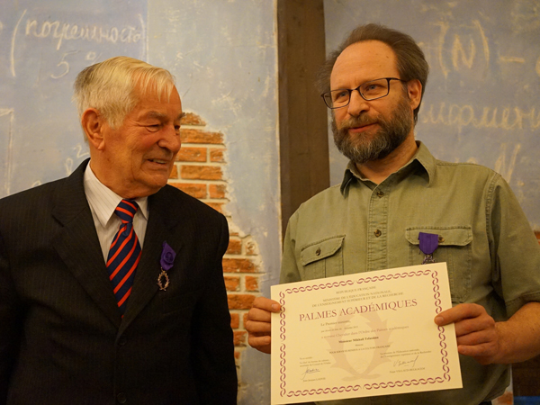 В заключение своей речи Алексей Сосинский в присутствии представителя посольства Франции вручил Орден и диплом академических ветвей новоиспеченному рыцарю.