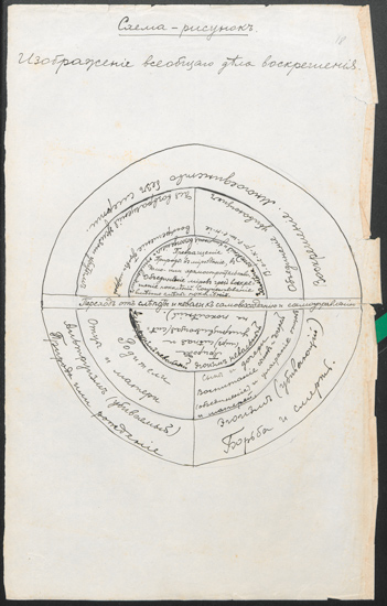 Схема супраморализма. Рукопись Федорова Но можно пойти дальше, попытаться выйти за рамки лабораторного формата. В некотором смысле то, чем сегодня занимаются спецслужбы и корпорации вроде Google и Facebook, во многом соответствует импульсу Федорова о максимально полном сохранении данных о жизни каждого человека. Но очевидно, что архивы, формируемые спецслужбами и корпорациями, не будут использованы для воскрешения из мертвых или же каких-либо социальных трансформаций, направленных на развитие человеческого потенциала. Контроль, подавление и зарабатывание денег — вот их основные цели. Но можем ли мы представить соединение в музее художника с теми технологиями и институциональными возможностями, которые есть у корпораций и спецслужб? Это дерзкая постановка вопроса, но она не может не вдохновлять.