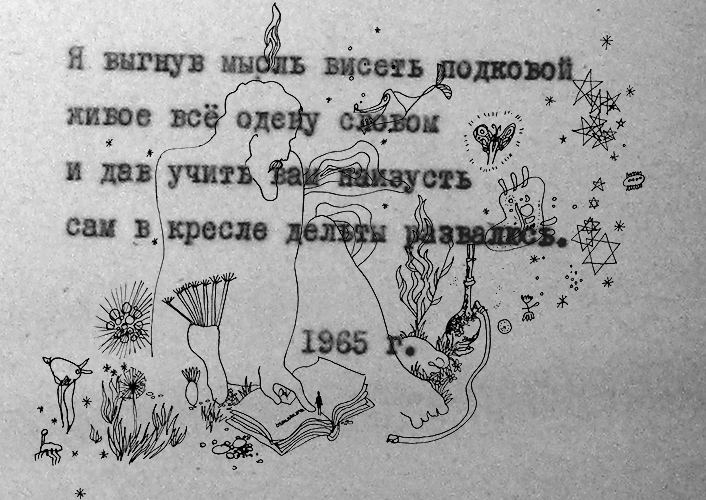 © Барбарис, 2015 В стихотворении «Прямая речь», почему-то не вошедшем в книгу (извечная проблема любого избранного в том, что оно неизбежно сужает обзор), мы можем проследить только что упомянутые свойства поэтики Аронзона, которые отчасти связывают его с ОБЭРИУ: включение знакомых в круг персонажей, пренебрежение временными рамками. К этим характеристикам можно добавить отчуждение: все герои — от Архилоха до дяди, от Иисуса Христа до Гоголя и Альтшулера — находятся в диалоге лишь постольку, поскольку их реплики стоят одна за другой. Мотив отрешенности повторяется и в «Записи бесед», где люди «уже не говорили — передавали друг другу одни и те же цветы, иногда брали маски с той или иной гримасой или просто указывали на ту или иную, чтобы не затруднять себя мимикой». Эта сцена невольно вызывает в памяти стихотворение Тютчева «Кончен пир, умолкли хоры». Вообще говоря, Аронзон нередко ссылается на Тютчева («Есть в осени присутствие зеркал...»). Как у многих значительных художников, стихи Аронзона в сжатом виде, словно еще не распавшийся на радугу луч света, содержат в себе поиски поэтов прошлых эпох.