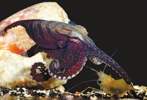 Осьминоги — существа одиночные, встречаются они лишь для спаривания, краткого и опасного, потому что самка вполне может партнера съесть. Памятуя об этом, самец старается держаться от нее как можно дальше и сперматофор в мантийную полость самки вводит специальным щупальцем. Оплодотворенная самка откладывает изрядную порцию яиц и умирает. Картина складывается безотрадная, и мы рады сообщить, что в ней появился просвет. Большие тихоокеанские полосатые осьминоги друг друга не едят, к партнерам относятся бережно и живут долго и счастливо.