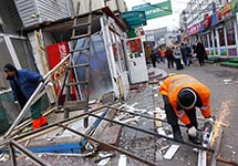 В ночь на 9 февраля в Москве начался массовый снос торговых павильонов, построенных, по уверению властей, без разрешительных документов. Префектуры ряда административных округов Москвы, в том числе, Центрального, Северного, Восточного, организовали снос незаконно возведенных торговых точек по более чем 50-ти городским адресам в соответствии с судебными решениями.