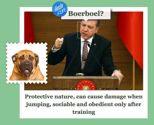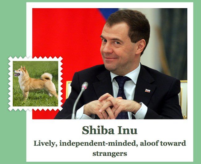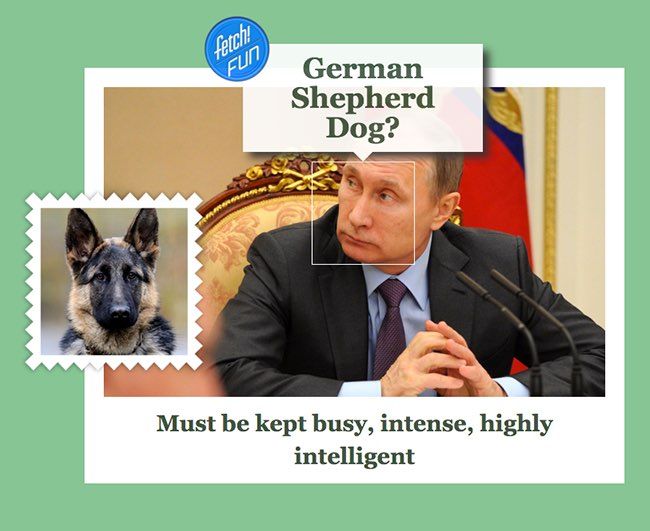 Но просто определять породы собачек очень скучно. Поэтому мы загрузили в этот сервис фотографии мировых лидеров и посмотрели, каким породам, по мнению робота Microsoft, они соответствуют.