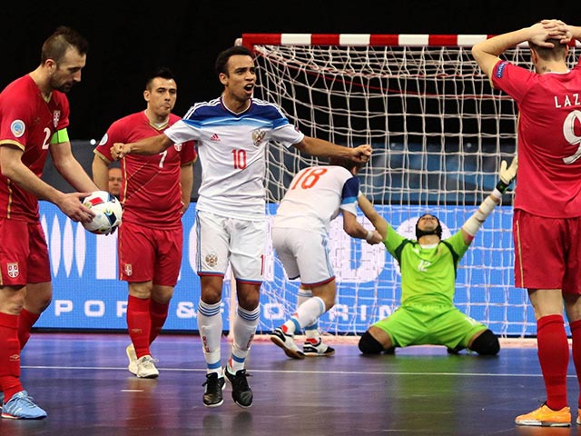 Сборная России победила команду Сербии в полуфинале чемпионата Европы по мини-футболу, который проходит в эти дни в Белграде. Встреча завершилась поражением хозяев турнира в овертайме со счетом 2:3.