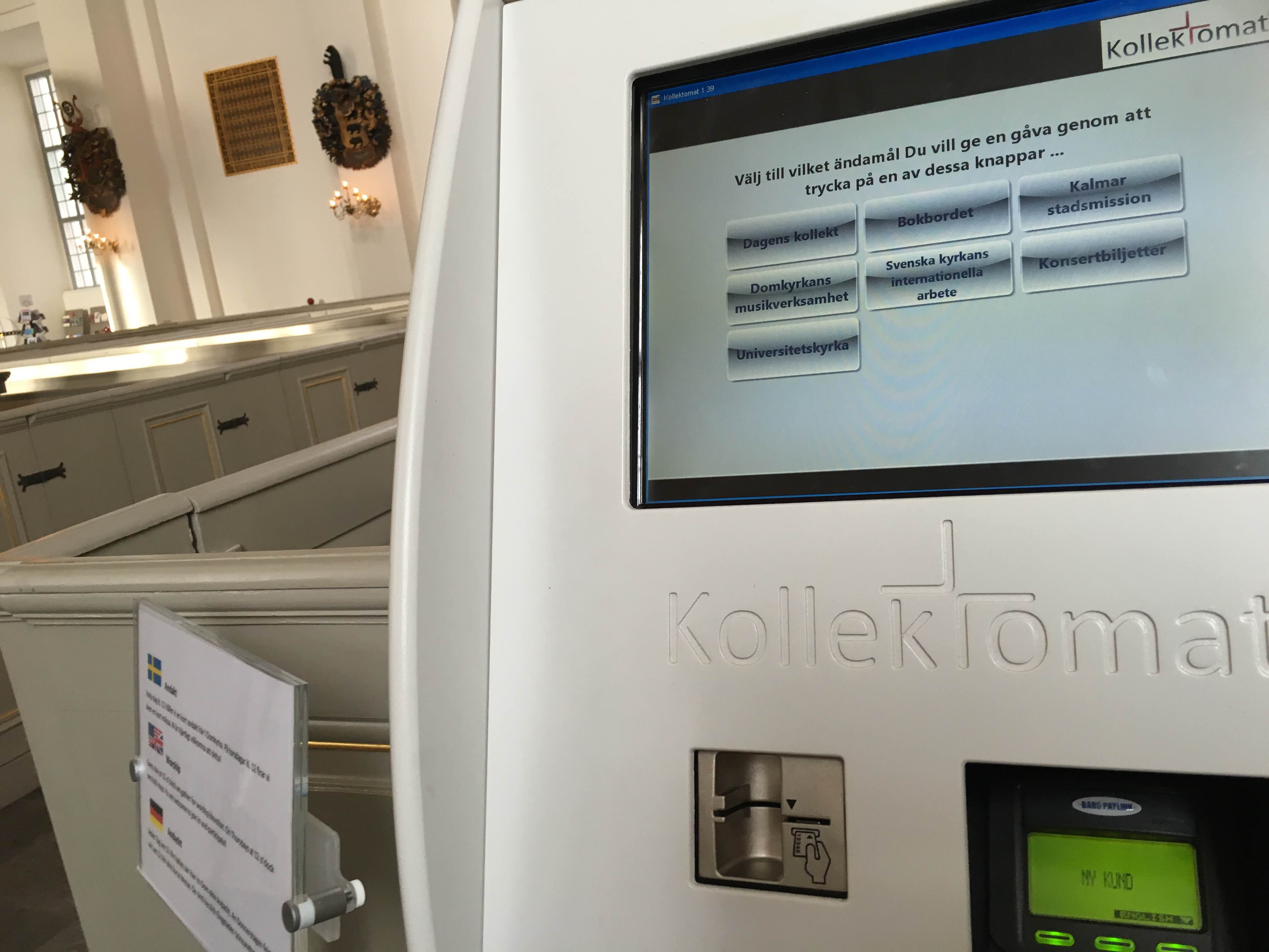 3. В Швеции я впервые в жизни увидела коллектомат – автомат для сбора пожертвований, установленный в церкви. К черту замызганные баночки с медью! Вставляешь карточку, нажимаешь на цель своего взноса, а это: книги, одежда для малоимущих, поддержка церковного хора и даже международная деятельность городской церкви. Потом выбираешь нужную сумму (20, 50, 100, 500 крон) – и платишь. И все это означает, что карточками пользуются здесь все, от бабушки до прадедушки. Для посетителей российских церквей космос.
