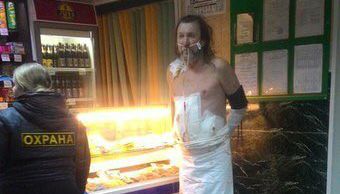 In a city located in Khakassia, about 2,700 miles east of Moscow, a hospital patient fled his room after an operation, in order to buy beer at a nearby convenience store. He arrived dressed only in his bed sheets, and his body showed the wounds from his recent surgery. He was also still dragging the various tubes and bandages attached to his body at the hospital.