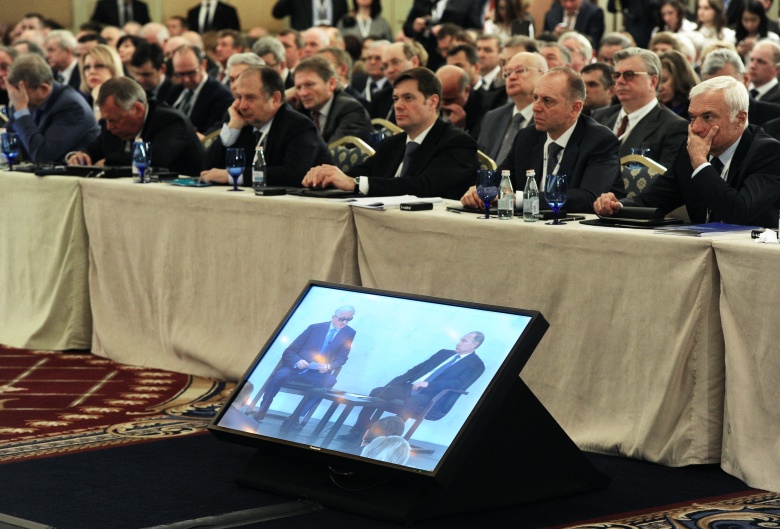 Владимир Путин и президент РСПП Александр Шохин на пленарном заседании съезда РСПП