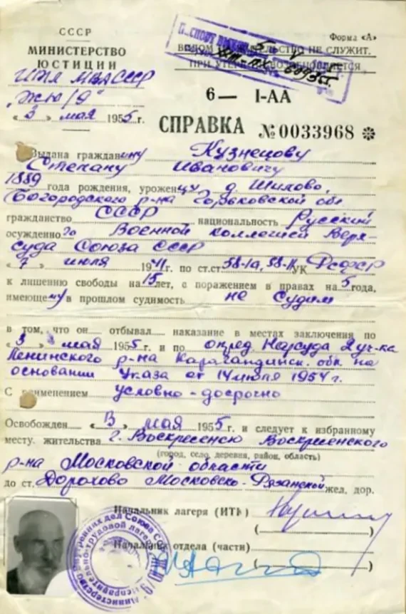 Справка об отбытии всего срока и освобождении и справка о реабилитации — выданы с разницей в полтора месяца.