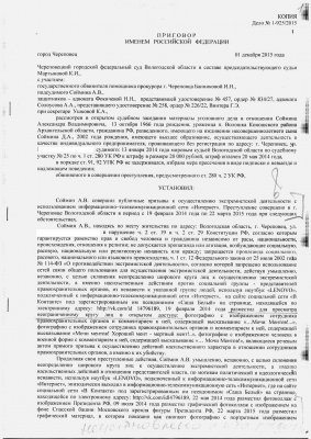 Вологодский областной суд оставил в силе решение суда первой инстанции по делу жителя Череповца Александра Соймина, который был обвинен в призывах к экстремистской деятельности. Соймин приговорен к полутора годам колонии.