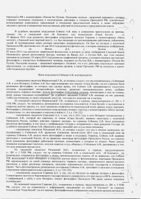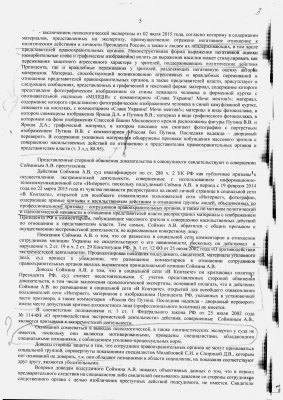 Фотографии с украинскими милиционерами и беркутовцами и подписи к ним были расценены судом как призывы к насилию в отношении правоохранительных органов вообще. При этом в тексте приговора в большинстве случаев фотографии описываются без упоминания государственной принадлежности силовиков. Более того — в основе дела лежит заключение лингвистической экспертизы, в котором содержится такое утверждение (цитируется по тексту приговора): «Призыв „Мочи ментов“ в силу функционирования данных призывов в социальной сети „ВКонтакте“, которая создает условия для доведения пропагандируемых идей или призывов для сведения неопределенного числа лиц, разделяющих и/или исповедующих идеологические взгляды, подобные взглядам субъекта высказываний, может быть обращен как к россиянам, так и к украинцам». При этом суд демонстративно вычеркнул украинский контекст из дела, посчитав, что фразы «Слава Украине!», «Прокуратуры Львовщины больше нет» и «Милиции Львовщины больше нет», которыми также сопровождались фотографии на странице Соймина, призывами к экстремистской деятельности не являются.