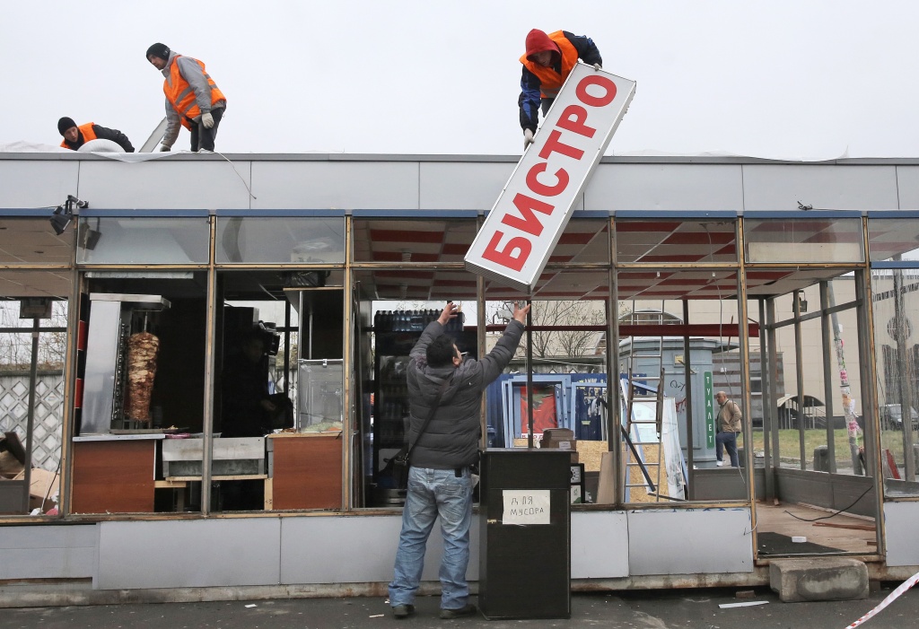 В Севастополе — столице Крыма — тоже хотят быть в тренде: из 3,5 тыс. палаток и ларьков в этом году собираются убрать 1 тыс. «самостроев». На юге решили совместить столичное законодательство и сибирские методы: «Некапитальных самостроев, несанкционированно размещенных на землях города, в Севастополе сегодня весьма много. Их демонтируют или переносят на специально отведенные для этого площадки в досудебном порядке по решению межведомственной комиссии», — сказал NT Роман Шапошников, начальник управления земельного контроля Севастополя. Чиновники, недавно познакомившиеся с российским законодательством, рвутся выполнять план. Предприниматели, которые создавали свой бизнес по украинским законам, а теперь узнают о российской правоприменительной практике, испытывают легкий мандраж: получить в Крыму землю в аренду законно невозможно — все конкурсы приостановлены. «Власти не собрали предпринимателей и не предложили им никакой альтернативы — вариантов перестроить свое имущество или переместить его на другое место. Более того, у чиновников появится возможность брать мзду, выбирая, какие именно киоски сносить», — рассказывает севастопольский предприниматель Олег Николаев. Месяц назад он решил запустить сеть фуд-траков — передвижных точек еды в Севастополе. С властями договориться не удалось. (К слову: года три назад ровно такую же сеть пытались открыть и в Москве: говорят, мэр Собянин сказал свое твердое нет.)