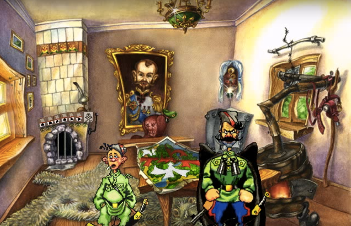 Читатель «Медузы» Николай Журавлев обнаружил в переиздании квеста «Петька и Василий Иванович спасают галактику» портрет Владимира Путина в образе императора. Он висит в штабе белых.