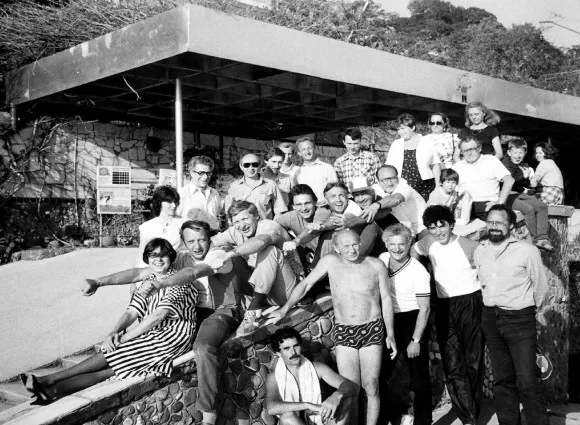 6. Распорядок дня был простой. Завтрак с 7 до 8:30 утра. Утреннее заседание с 9 утра до 1 дня, с перерывом на чай и кофе. Обед с 1 до 2-х. С 2-х до 5 часов было свободное время, когда каждый занимался чем хотел. Основными занятиями были виндсерфинг, теннис, различные прогулки по морю и дендрарию. Вечернее заседание с 5 до 7 вечера. Ужин с 7 до 8, и ночное заседание с 8 до 10 часов, с печеньем и кефиром без перерыва. Ночное заседание могло затянуться и до полуночи. » Мертвый час «, характерный для домов отдыха, мы, конечно, не соблюдали.
