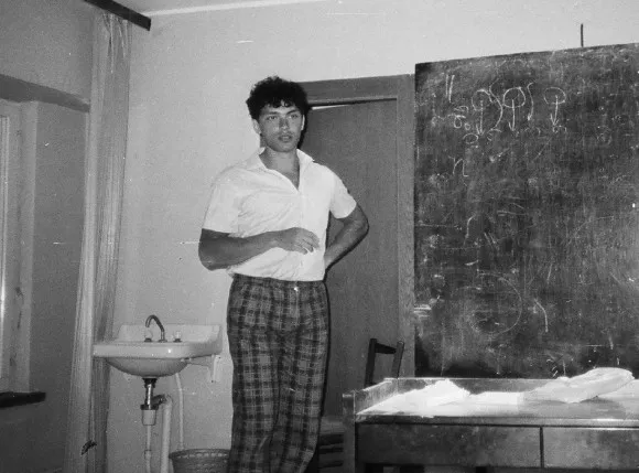 Итак, для проведения первой конференции, Сочи-1, в 1984 году у нас было 13 комнат, а значит 26 участников! Всех нас поселили на третьем этаже этого 4-х этажного здания. Одно из «хозяйственных» помещений на первом этаже нам было выделено для заседаний. Администрация «Спутника» любезно оборудовало его черной доской, столами и пластиковыми стульями. Это и было всё, что нам только требовалось (см. ниже).