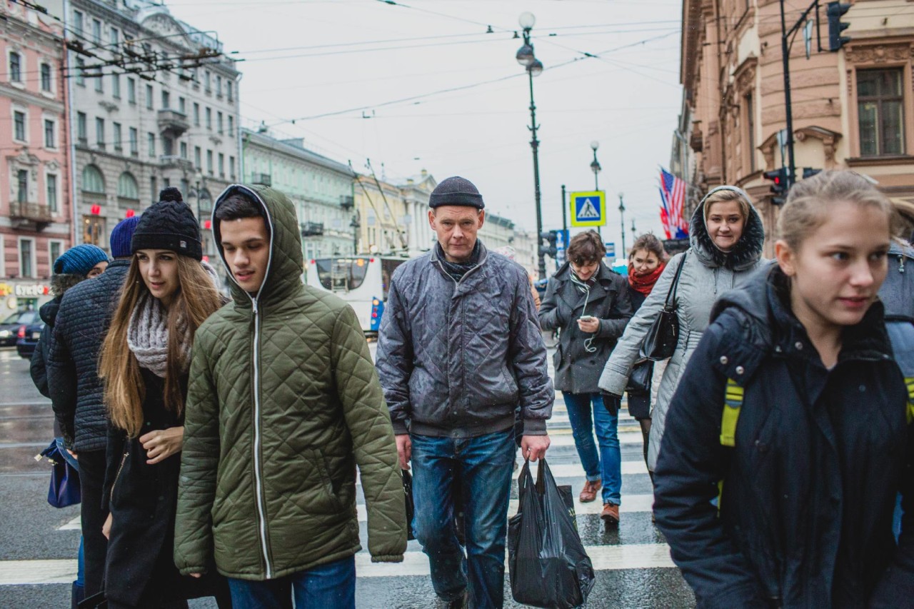 Алексей идет по Невскому проспекту сдавать книги в библиотеку им. В. Маяковского. Любимые книги — по истории России.Фото: Ксения Иванова для ТД Когда ушел от жены, сперва жил в скиту в Пушкинских горах, в Свято-Успенском монастыре. Потом пошел работать в колхоз скотником, мне там дали жилье. Я на улице не жил ни дня. Степень моего максимального падения — это ночлежка города Пскова. Вот там действительно ночлежка: вши, алкоголизм, отсутствие какой-либо социальной помощи, зал на 20 человек, в котором один телевизор и один электрочайник, кормление раз в сутки баландой в столовой.