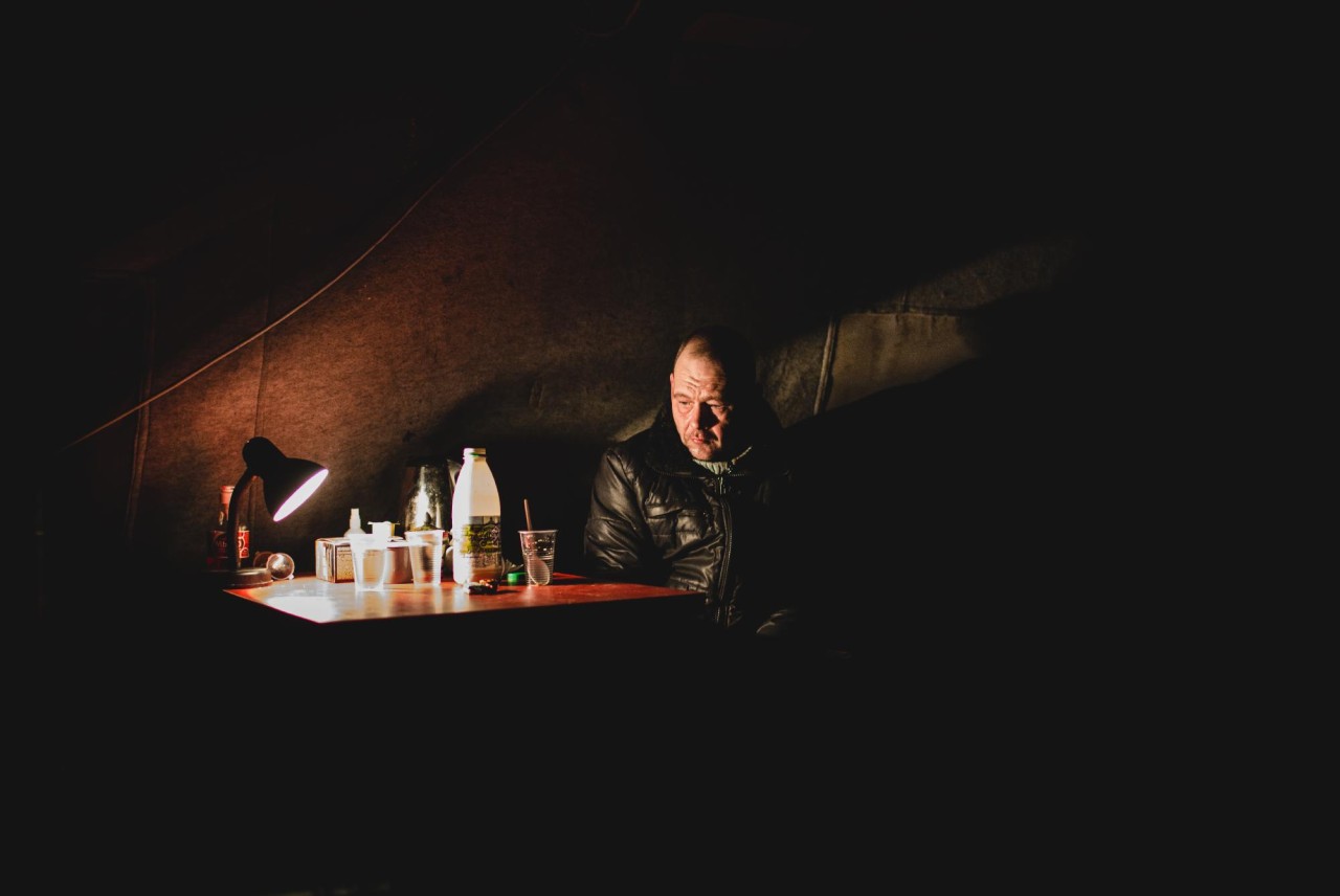 Алексей после завтрака в палатке «Ночлежки». Он восстановил свой паспорт и ищет новую работу: скоро к нему приезжает дочка. Алексей хочет помочь ей с жильем и осуществить ее детскую мечту — сводить в дельфинарий.Фото: Ксения Иванова для ТД Если б не сложилось с Боровой, 112 Б, то я не знаю, что бы со мной сейчас было. Может, сейчас бы одним зэком было больше. Я бы просто что-то натворил от безысходности, потому что лучше сесть в тюрьму, чем жить на улице в холод. А может быть, и духу бы не хватило. После разговора с Наташей у меня просто появилось ощущение, что кому-то на меня не наплевать. Понимаете? Дело не в еде и не в деньгах на метро, а в том, что люди там по-настоящему заинтересованы были мне помочь. Я от этого был в шоке.