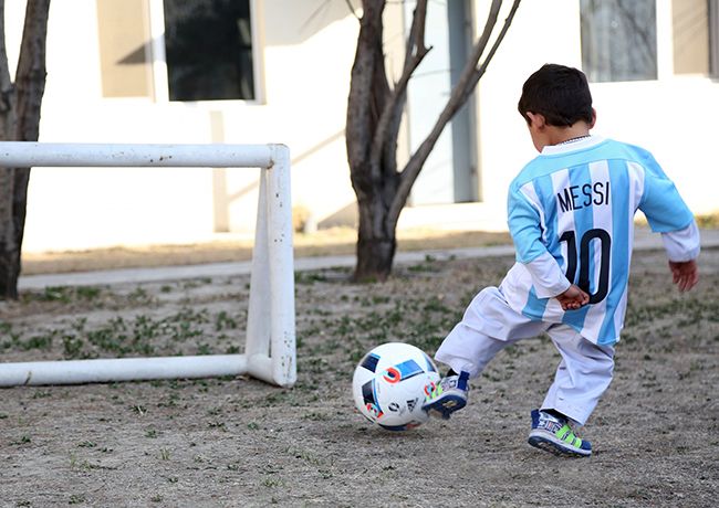 Пятилетний Муртаза Ахмади из Афганистана прославился после того, как его сфотографировали играющим в футбол в целлофановом пакете. На самодельной полосатой «майке» ручкой было выведено «Месси» и номер 10.