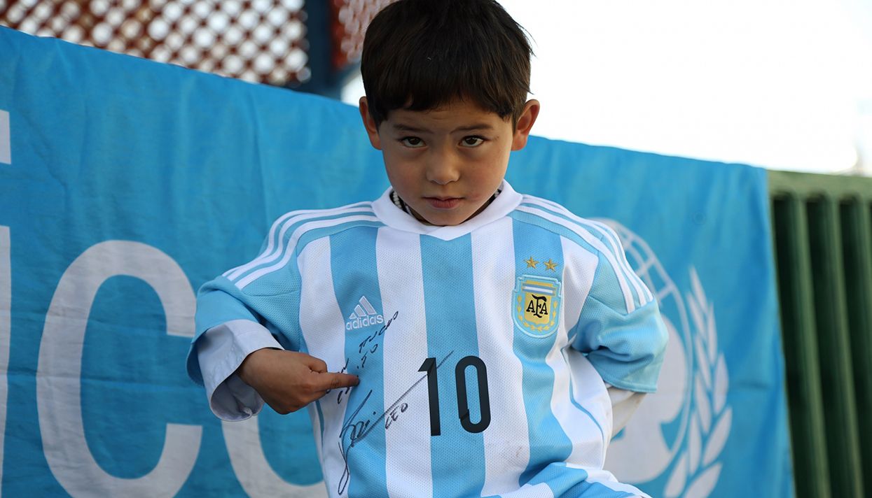 Месси подарил майку афганскому мальчику, который играл в футбол в пакете