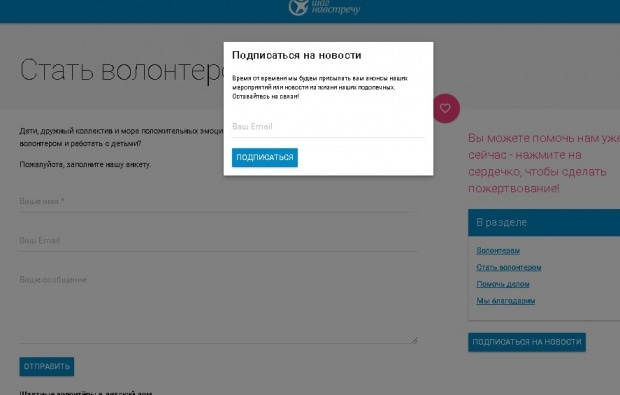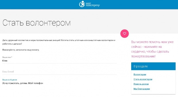 «Шаг навстречу» – это, в первую очередь, волонтерский проект, поэтому было важно настроить прием заявок от желающих помогать детям.