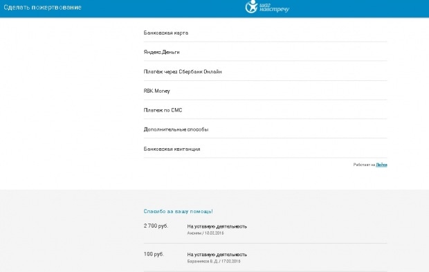 У жертвователя есть множество способов помочь. После нажатия на одноименную кнопку он переносится на отдельную страницу, где ему предлагается перевести нужную сумму.