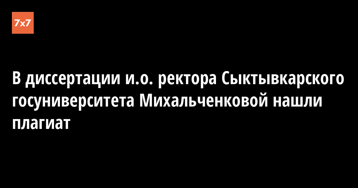 Издание «Красное Знамя» 2 марта сообщило о том, что в диссертации и.о. ректора СыктГУ им. П. Сорокина Натальи Михальченковой обнаружен плагиат. Такие данные предоставил журналистам Экспертно-аналитический центр Российской академии наук. Почти половина научной работы Михальченковой состоит из заимствований.