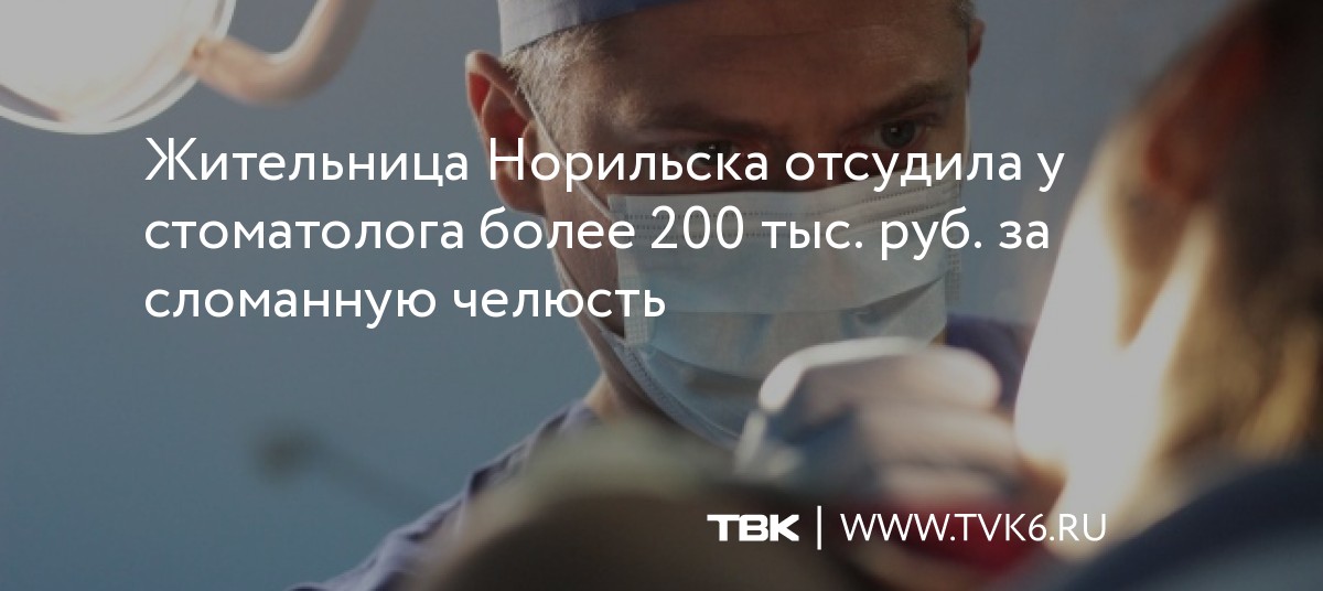 Жительница Норильска отсудила у стоматолога более 200 тыс. руб. за сломанную челюсть
