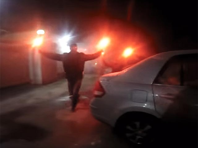 На ночном видео атакующих российское посольство называют "неизвестными патриотами". Их лица скрыты черными масками. Участники нападения забросали пиротехникой здание посольства и повредили кувалдами несколько автомобилей с номерами посольства РФ серии "D001". У машин разбили стекла, зеркала и капоты.