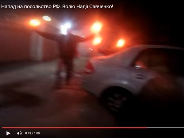 В ночь на 6 марта неизвестные забросали посольство России в Киеве фаерами. Видео нападения было выложено на YouTube.