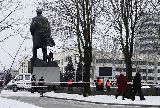 Photo: Mikhail Sokolov / TASS / Scanpix The damaged Lenin statue in Donetsk central square, January 27, 2016.