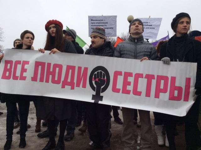 Выступающие говорили о необходимости преодоления гендерного неравенства, о домашнем насилии, о дискриминации женщин при приеме на работу, о нетерпимом отношении в обществе к лесбиянкам и женщинам-трансгендерам. Одна из выступающих, Полина, рассказав, что после развода осталась без дома и без всякой социальной помощи, закончила свое выступление призывом любить свободу, наслаждаться равноправием и бороться за революцию.