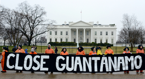 Акция с требованием закрыть тюрьму в Гуантанамо, организованная правозащитниками перед Белым домом. 2014 год. Фото: Stephen Melkisethian Адвокат Надежды Савченко Илья Новиков написал на своей странице ответ на все пункты комментария Захаровой. Там он заметил, что ситуация с его подзащитной подпадает под пункт Минского протокола «Обеспечить освобождение и обмен всех заложников и незаконно удерживаемых лиц на основе принципа «всех на всех».
