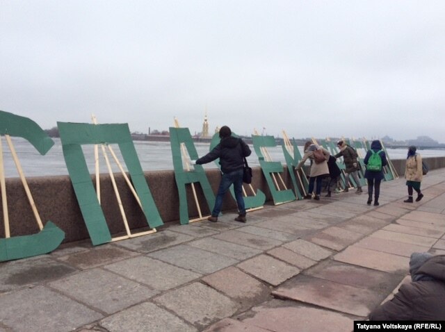 В Петербурге 10 гражданских активистов пришли на Дворцовую набережную и установили напротив Эрмитажа надпись "Спасем Надежду". Как сообщает корреспондент Радио Свобода Татьяна Вольтская, надпись была составлена из отдельных букв в человеческий рост, каждую букву активисты прикрепили к отдельной деревянной подставке. Они почти никому не сообщили заранее о своей акции и работали очень быстро, видимо, боясь, что ее могут сорвать. Но им никто не помешал, кроме ветра с Невы.