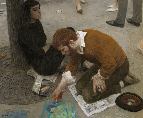 У Коржева узнаваемый стиль: как из камня вырубленные композиции, правильно вылепленные фигуры, кинематографические ракурсы, он сложен по цвету. Его высокое ремесло вне сомнений. Как и его честность и гуманизм. Он большой художник. И одновременно это такое искусство, которое (условно говоря) не знает, что написан «Улисс» и есть Джексон Поллок, что живописная метафора может иметь самые разные формы. Это не хорошо и не плохо, просто разные миры, как евклидова и неевклидова геометрия.
