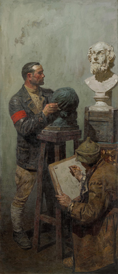 — Папа себя искал, пробовал рисовать картины на бытовые темы, в том числе семейные, лирические, пока однажды его мама, моя бабушка, не заметила, что все это не сильно интересно. Катализатором стала недельная поездка во Францию. Он вернулся и написал «Художника», «Влюбленных», а потом и «Поднимающего знамя».