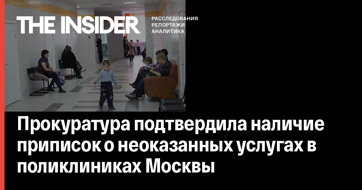 Как ранее писал The Insider московские поликлиники в массовом порядке подделывают отчеты о якобы проведенных ими медицинских услугах, которые в реальности не имели место.