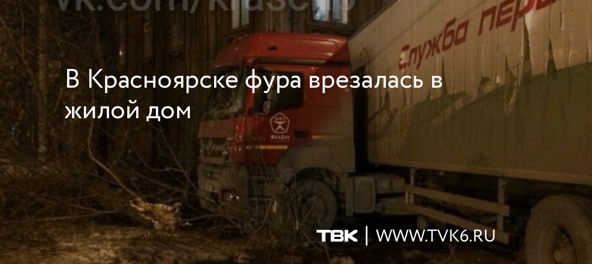 Водитель большегруза, уходя от столкновения, резко повернул влево. При этом снес светофор, дерево и въехал в жилой двухэтажный дом.