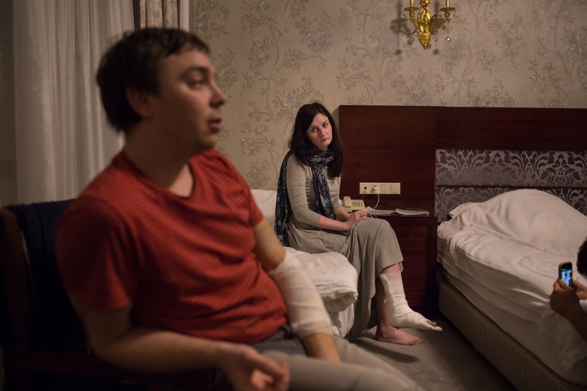 10 марта, 9:30. После прошедшей в допросах бессонной ночи Ивана Жильцова, Антона Прусакова, Александрину Елагину, Михаила Солунина и меня отвозят на судебно-медицинскую экспертизу. У мужчин эксперт фиксирует многочисленные гематомы по всему телу; у Александрины находят отслоение одной из костей левой ноги. Из больницы она выходит уже в гипсе.