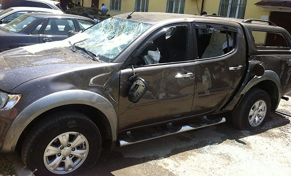 19:14. «Давай, выходи! Выходи ***** из машины!» — орут нападающие и обильно матерятся. Они кричат: «Вы защищаете террористов», «Вы никого не представляете», «Уезжайте, вам нечего делать в Чечне», «Аллах акбар», «Вы защищаете убийц наших отцов». Через разбитые окна пассажиров, которые в основном сгруппировались в центре салона, бьют и тычут палками.