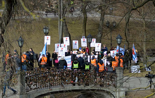 В стороне от памятника, в парке Бастионная горка, стоял антифашистский пикет — это тоже часть происходящего каждое 16 марта в Риге ритуала. В пикете преобладали русскоязычные жители города и немцы. Некоторые держали в руках большие фотографии — сцены казней в концлагерях и на улицах Риги.