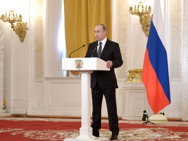 Путин вручил медаль ордена "За заслуги перед Отечеством" II степени командиру большой подводной лодки "Ростов-на-Дону" Новороссийской военно-морской базы Черноморского флота капитану второго ранга Андрею Адамскому и инженеру отделения сигнализации 1073 Центра управления ВКС старшему лейтенанту Елене Веселовой. Медалью "За отвагу" награжден заместитель командира гаубичного артиллерийского дивизиона 120 артиллерийской бригады 41 общевойсковой армии капитан Андрей Подольский.