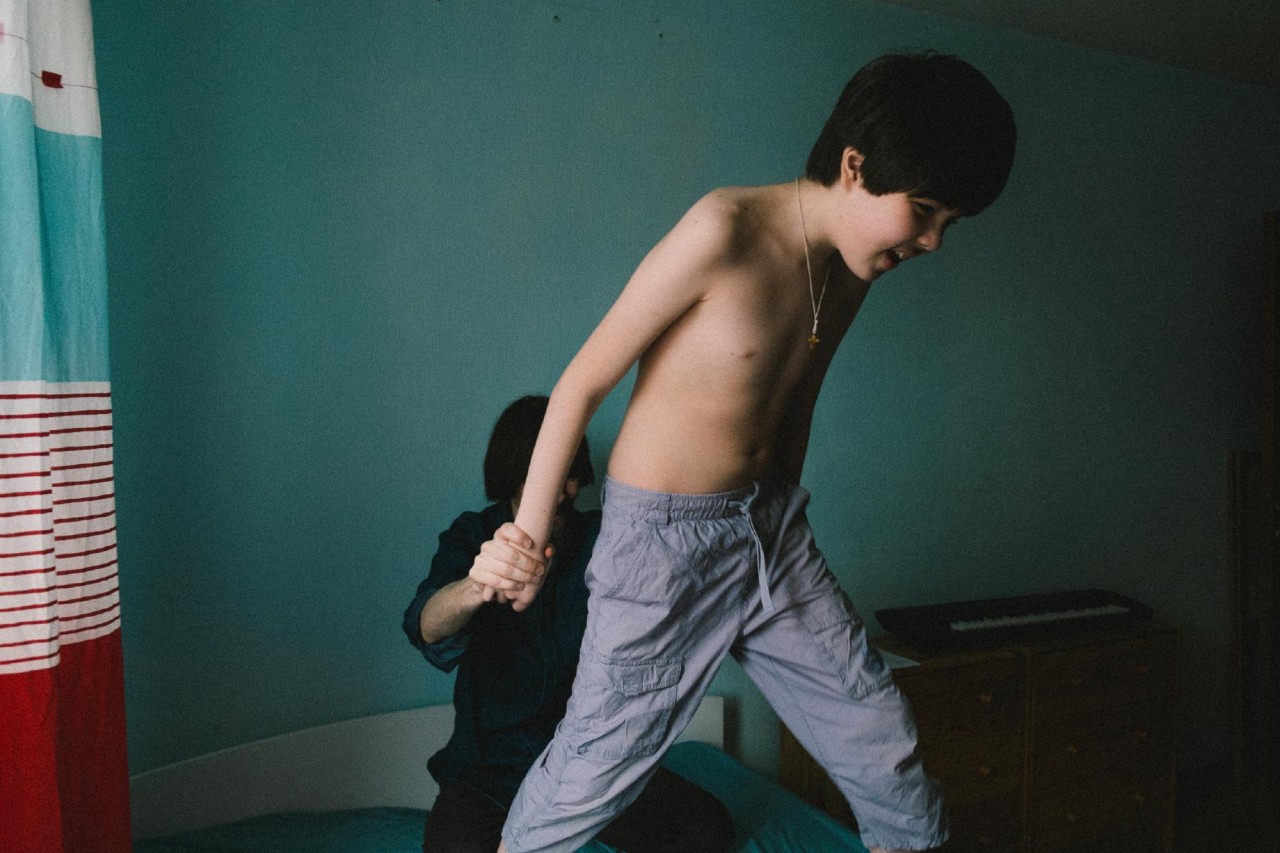 Прыжки, обнимания, дружеские толкания на большой мягкой кровати для Никиты и Антона не просто игра, но и важные сенсорные занятияФото: Мария Ионова-Грибина для ТД В заключении о возможности гражданина быть приемным родителем, выданном родителям Никиты Нине Манджиневой и Антону Аксюку Отделом социальной защиты населения района Теплый Стан и подписанном начальником отдела Светланой Полоус, прямо сказано, что Нина «не может быть родителем малолетнего ребенка».
