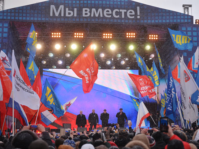 В Москве в 17 часов начался митинг-концерт, посвященный этому историческому событию. Впрочем, накануне не обошлось без скандальных сообщений, что на митинг госпредприятия направляют участников по разнарядке, а вузы сгоняют студентов на празднования годовщины.