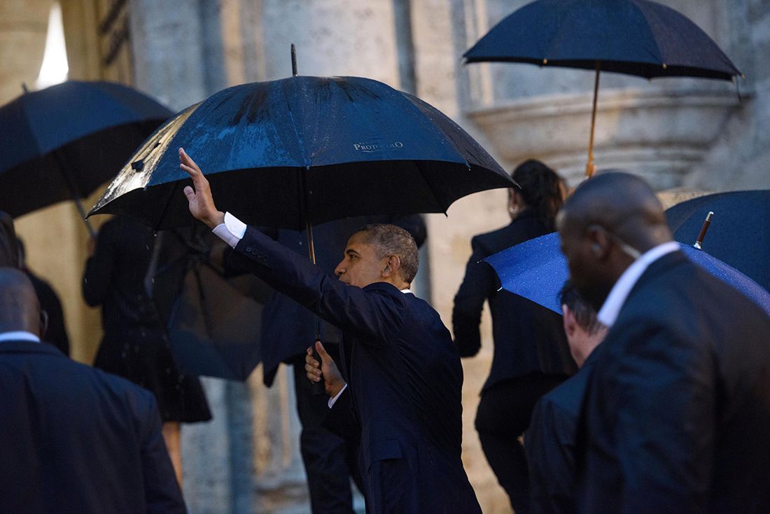 Чтобы увидеть президента США, местным жителям пришлось стоять под дождем.