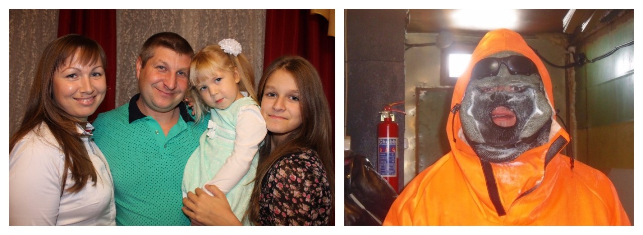 Слева: У Александра Белокура две дочки. Старшей скоро в институт, так что Александру снова нужно ехать на Антарктиду — зарабатывать на учебу в вузе. Справа: Чтобы выйти на улицу полярники надевают специальные маски от обморожения лица и темные очки — иначе можно сжечь глаза.Фото: из личного архива В Антарктиде числятся 44 страны. Это материк, который покрыт льдом толщиной в две-три тысячи метров. Вы представляете, что такое материк? Там есть и нефть, и уголь, и золото. Если допустить дележку — будет война. Поэтому страны заключили договор о том, что Антарктида неприкосновенна. Оружие там запрещено, добывать ресурсы нельзя. Можно только производить научные исследования. Наши станции — Мирный, Прогресс, Восток, Беллинсгаузен, Молодежка и моя Новолазаревская.