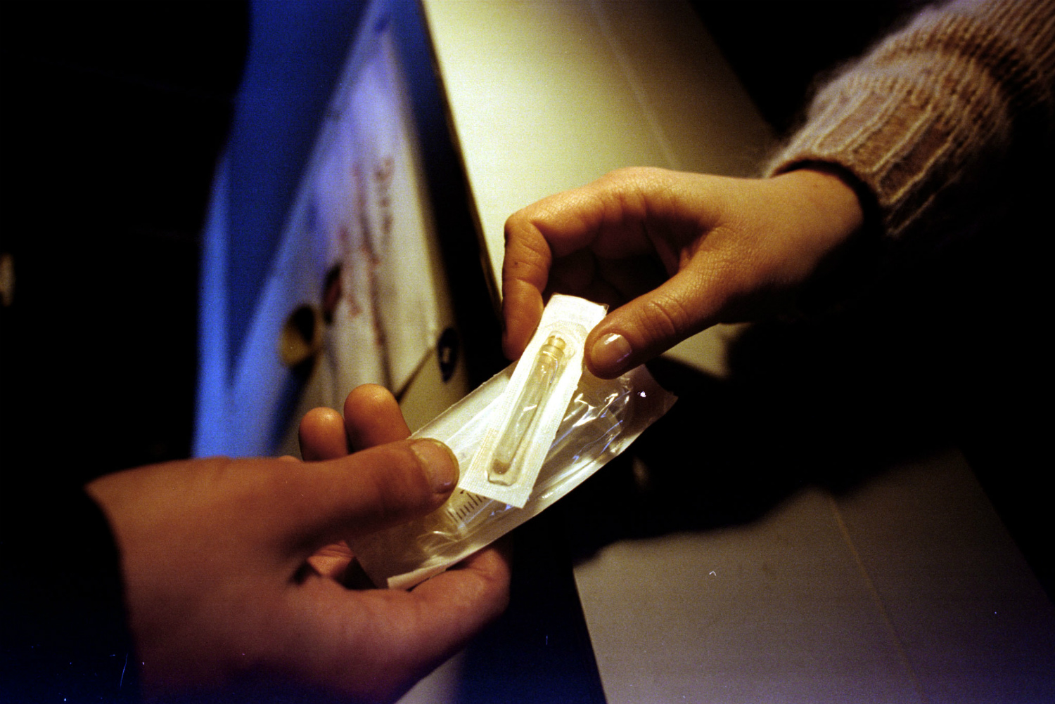 Шприцы, предназначенные для бесплатной раздачиФото: Павел Никулин «Какие-то активисты называют нас пособниками наркоманов, — смеется Ежи. — Был такой момент, когда у одной из аптек людей просто прессовали. Одного парня избили просто за то, что он стоял с баянами. Мужик был в два раза больше него. В итоге менты забрали обоих. Но того, кто избивал, отпустили сразу».